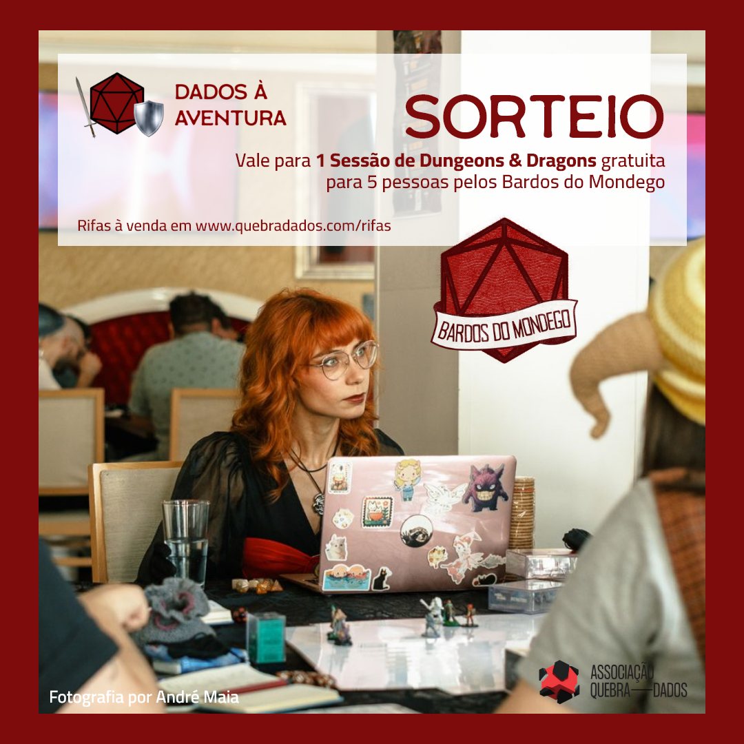 Os Bardos do Mondego tiveram a generosidade de apoiar a Associação Quebra-Dados e estão a oferecer um Vale para uma sessão de D&D gratuita, em data e local a combinar entre os Bardos e o grupo vencedor deste prémio.